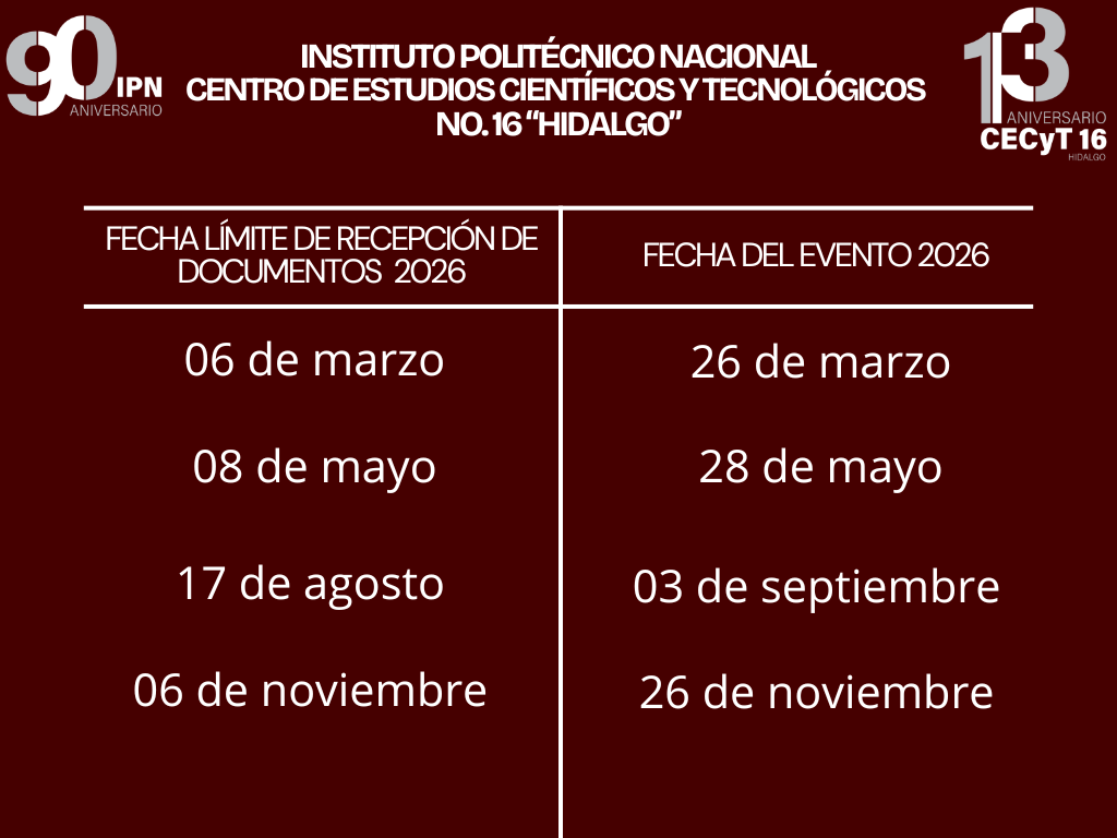 Para tramitar su Acta de Examen Profesional, debe elegir la opción de titulación y cubrir los requisitos que se estipulan. Una vez cubra los mismos, deberá entregar su documentación en el DIyDT, ubicado en el Edificio de Laboratorios Ligeros Planta Alta, para que sea programado en la próxima ceremonia de toma de protesta. Cada año se llevan a cabo cuatro actos protocolarios de toma de protesta, siendo dos de manera semestral, conforme al siguiente calendario: